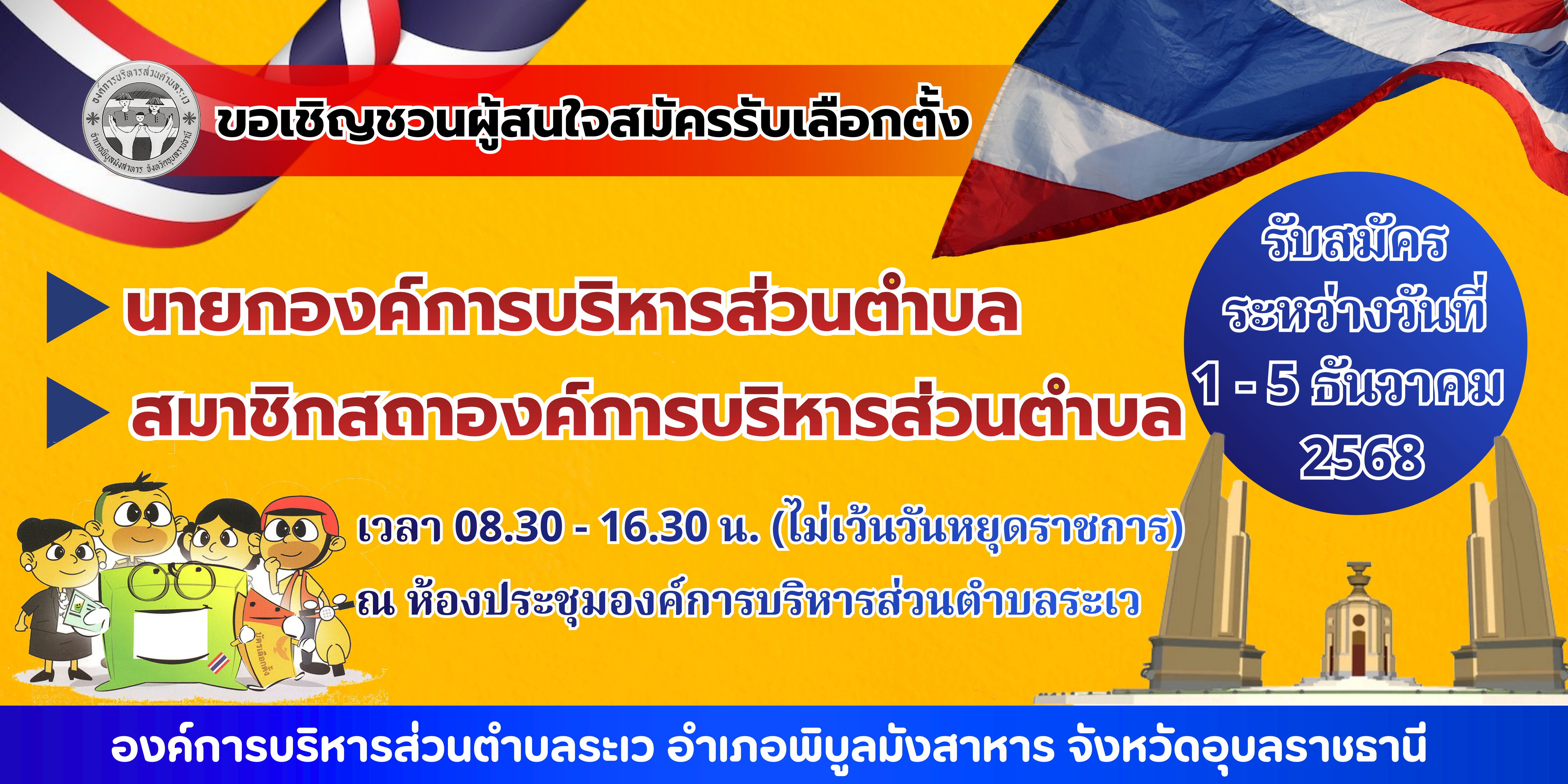 ประชาสัมพันธ์การรับสมัครสมาชิกสภาองค์การบริหารส่วนตำบลระเว และนายกองค์การบริหารส่วนตำบลระเว